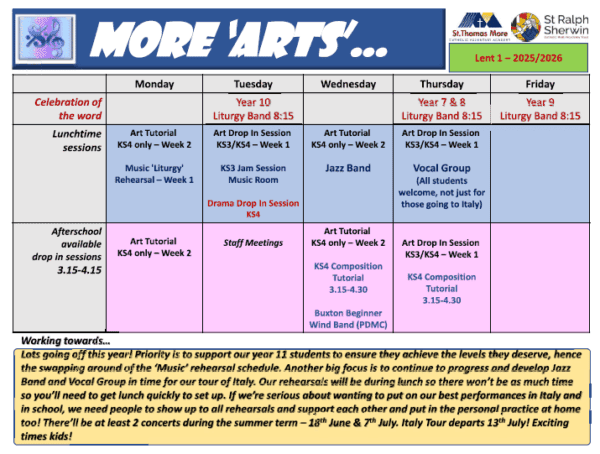Expressive Arts Extra Curricular Lent 1 Term 2025 2026