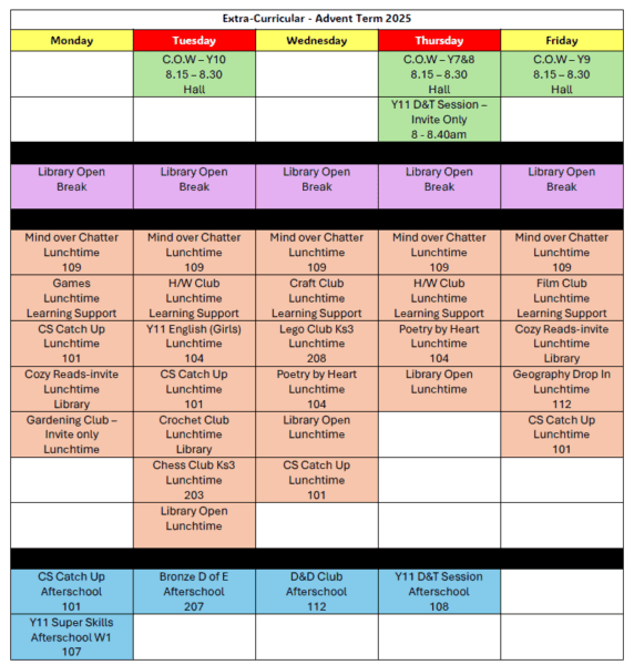 Extra Curricular Lent 1 Term